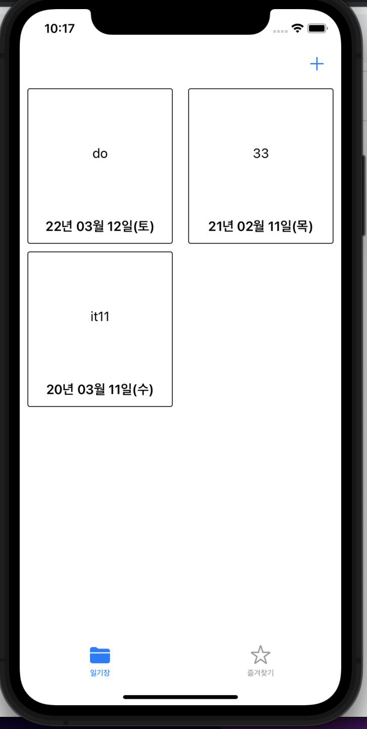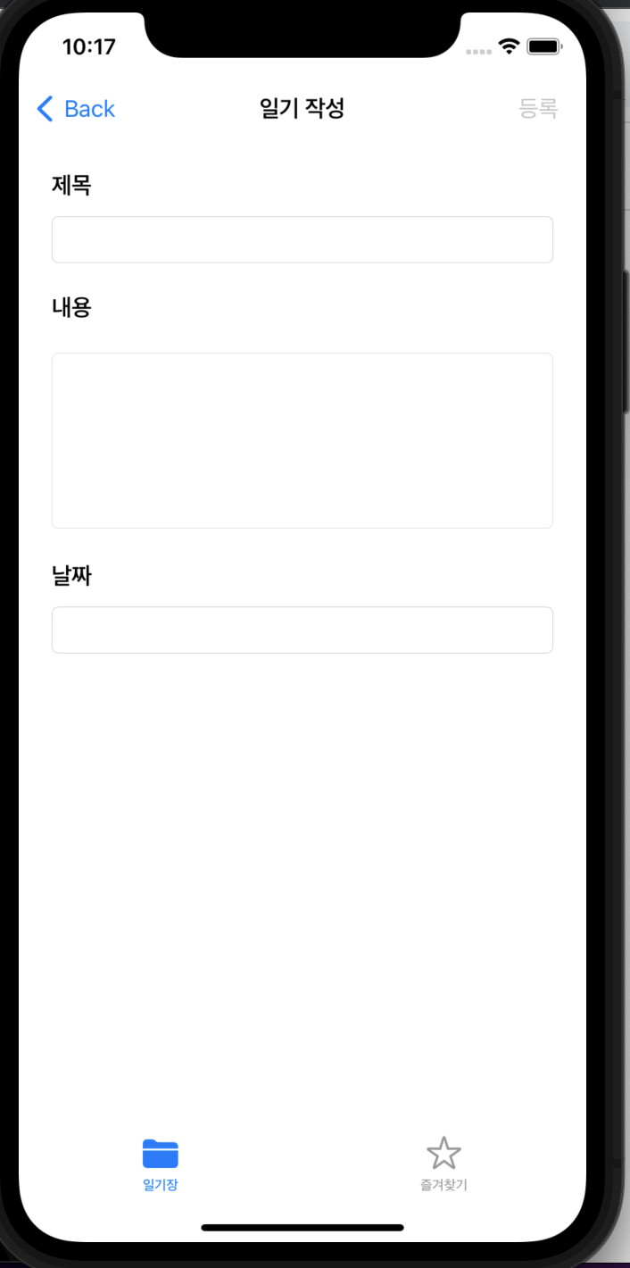등록버튼을 누르면 일기장화면에 해당 내용이 추가가 된다.